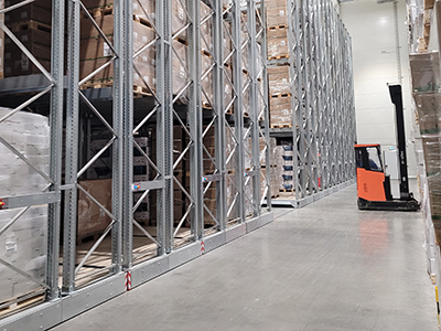 Det elektriskt styrda MOVO-systemet, som löper på räls i golvet, hanterar tunga laster med hög precision och säkerhet. Med kapacitet på upp till 30 ton per sektion och höjder på upp till 12 meter är systemet idealiskt för moderna frys- och kylager där varje kvadratmeter räknas. Sensorer och flexibla styrfunktioner gör systemet enkelt att manövrera och garanterar en trygg drift – en viktig del i att kombinera effektivitet och säkerhet.